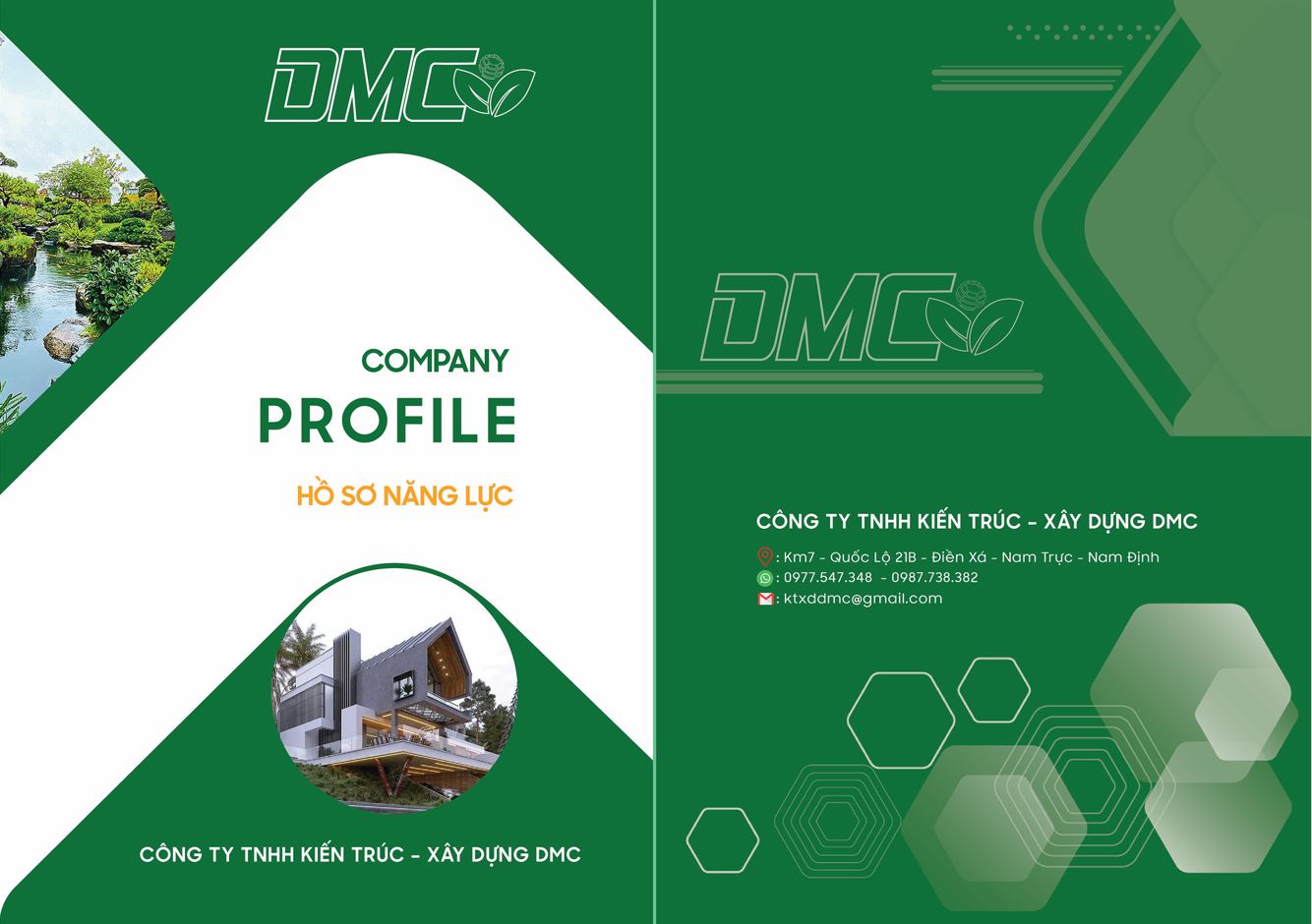 Tháng 3 năm 2018 Công ty TNHH Kiến Trúc – Xây Dựng DMC được thành lập trên mảnh đất làng nghề truyền thống cây cảnh Điền Xá – Nam Trực – Nam Định với mục đích và tôn chỉ hàng đầu là thiết kế, thi công, xây dựng một không gian sống xanh đẳng cấp, thân thiện đáp ứng ngày càng nhiều nhu cầu của khách hàng.